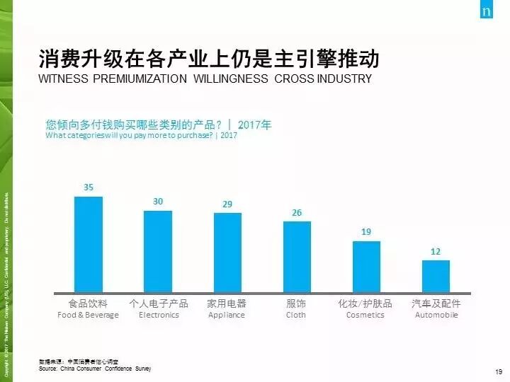 Consumer upgrading is still the driving force in various industries, with 35% of consumers willing to spend more money on food and beverages, ranking among various industries.
