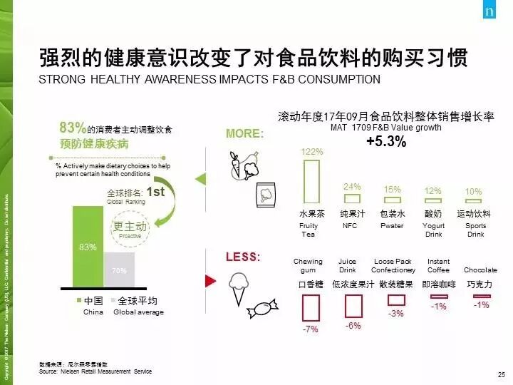 Health awareness has changed people's purchasing habits for food and beverages, with sales of fruit tea, pure fruit juice, and packaged water growing rapidly, while the growth of chewing gum and low concentration fruit juice has slowed down.