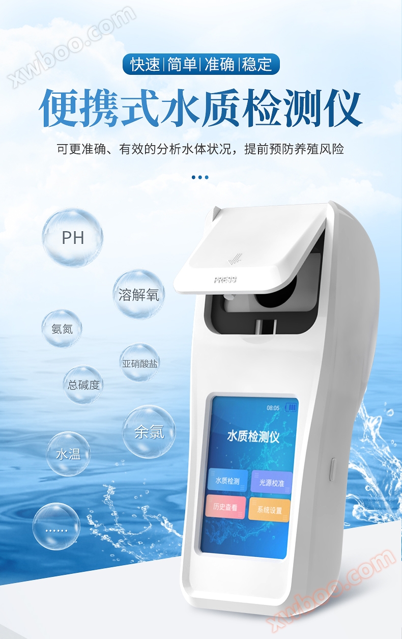 Suitable for aquaculture, river monitoring, production monitoring, purified water plants, waterworks, domestic sewage treatment plants, industrial wastewater, swimming pools, water source protection, scientific research experiments, etc.