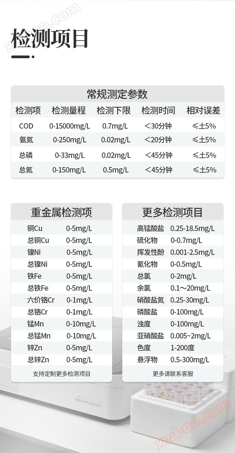 Colorimetric method: Colorimetric tube (16mm digestion colorimetric integrated tube), colorimetric dish (10mm, 30mm, 50mm);