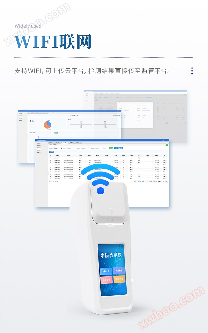 Configure a regulatory platform, and the test results can be directly wirelessly transmitted to the platform for long-term and short-term analysis of water quality to assist in management.