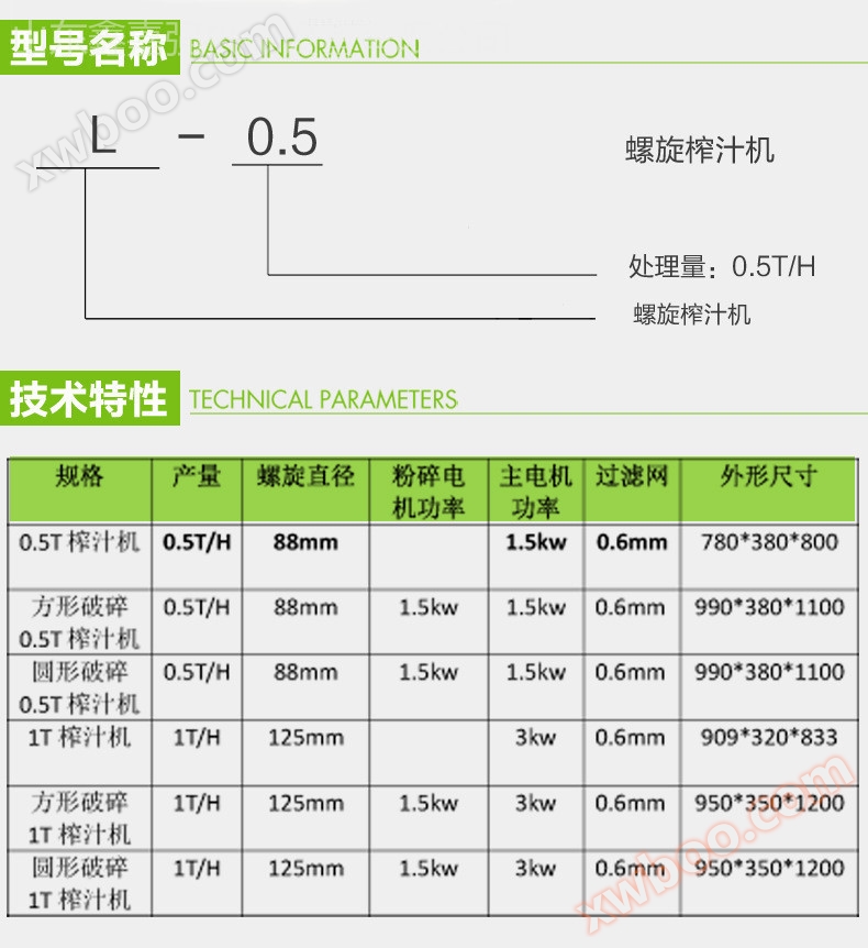 The stainless steel spiral fruit and vegetable juicer is suitable for pulping and separating various fresh fruits and vegetables. Products such as orange flesh, grapes, macaques, mulberries, bayberries, and peaches (without seeds) can be processed into fruit sauce by separating the seeds, skins, and seeds. It can also be used to separate vegetables such as cut tomatoes, chili peppers, and celery into vegetable pulp and extract vegetable tendons. It is an ideal machine for making jam, fruit juice, and vegetable juice, and is an important equipment for food processing enterprises.
