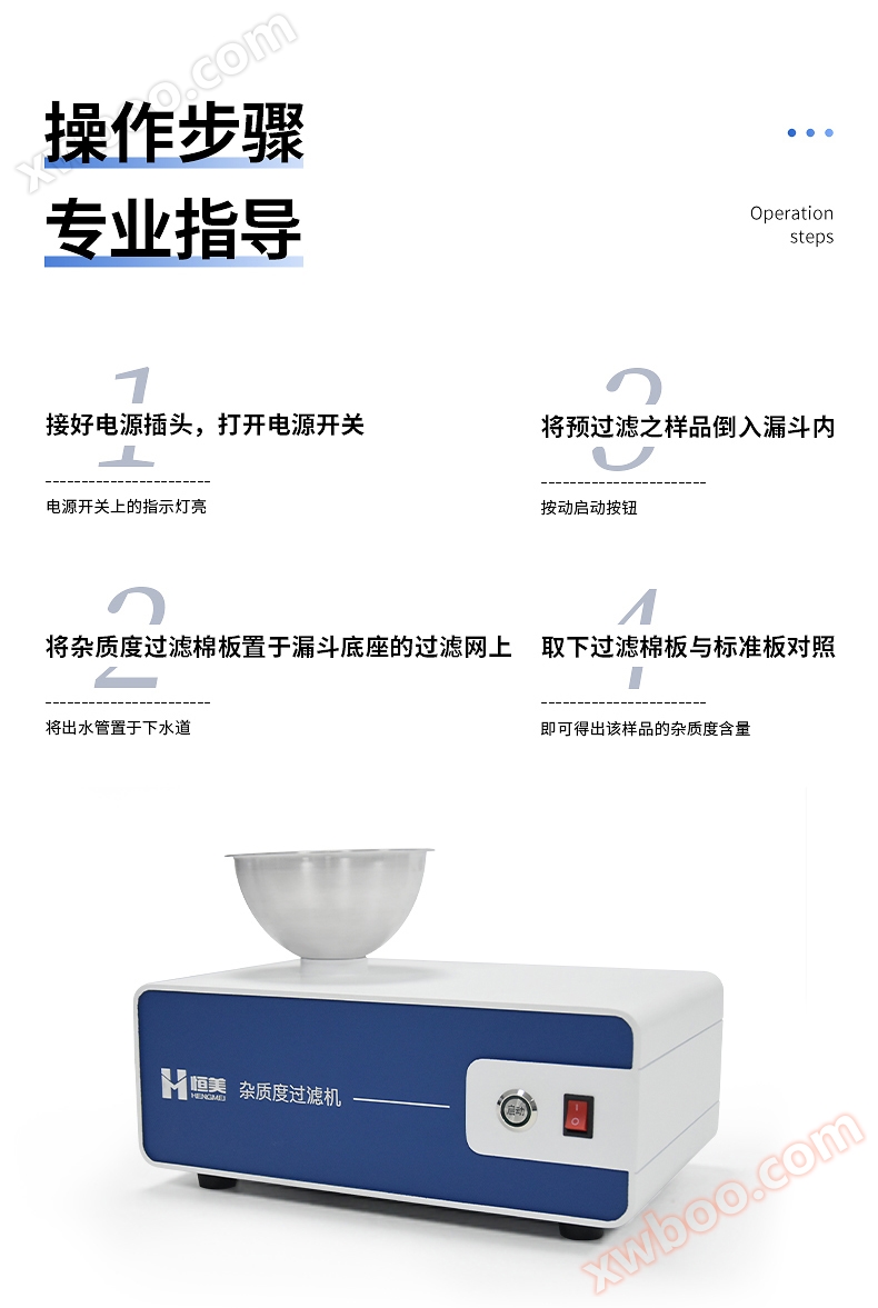 HM-ZZ Impurity Filter is specially manufactured by Shandong Hengmei Electronic Technology Co., Ltd. in accordance with the national standard GB/T5313.1-5413.32 "Inspection Methods for Milk and Dairy Products" for the determination of impurities. This instrument is the latest third-generation impurity filter developed and produced based on the first generation impurity filter ZA-GB1 (ZA-GB1 according to GB5413.30-1985) and the second generation impurity filter ZA-GB2 (ZA-GB2 according to GB5413.30-1997) according to GB5413.30-2016. The HL-GB2 impurity filter avoids the hassle of belt maintenance and expensive consumables associated with mechanical ZA-GB1 filters. On the basis of ZA-GB2, the motor has also been improved and modified according to the new standard GB5413.30-2016, which better meets the requirements of GB5413.30-2016, is more durable, maintenance free, and equipped. Eliminating the annoying noise of the first generation product, it is more durable and comes with all necessary accessories, making it more comprehensive and convenient to use.