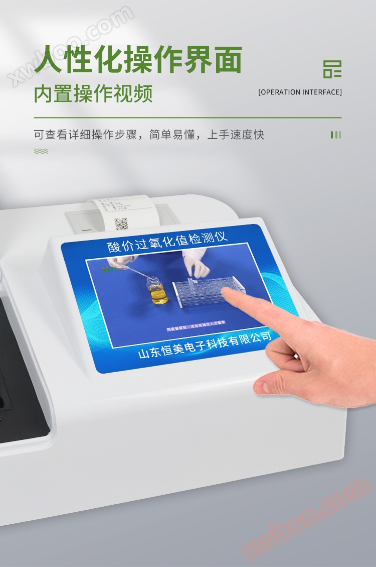 The peroxide value detector is an integrated oil rapid detection and analysis equipment, which can quickly detect the peroxide value content in edible vegetable oil, edible lard, peanut oil, sunflower oil, rice bran oil, food, and meat products; Through testing, it can be determined whether vegetable oil meets national standards or whether it is inferior oil, gutter oil, etc. Reserve other testing programs and ports for the instrument, and easily add testing items according to future needs. In the future, it can be upgraded to a comprehensive type instrument for detecting aquatic and noodle products.