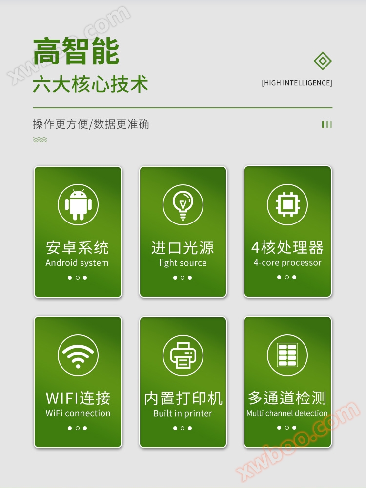 7. The light source adopts imported ultra high brightness light-emitting diodes, which have high precision, strong stability, controllable light source, can turn off unused light sources, and lower power consumption.