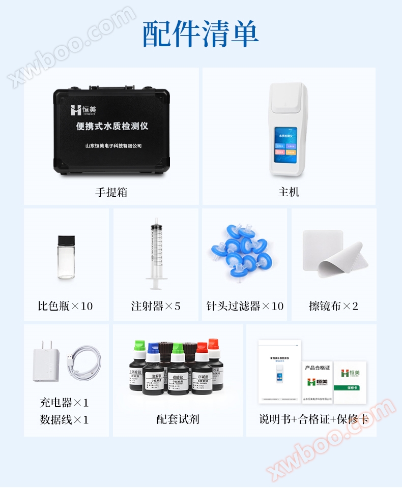 Extract a certain amount of water sample, and after pre-treatment, drip the detection reagent according to the reagent instructions for different detection items. The detection reagent will react with the analyte in the water, and the reaction solution will present a specific color.