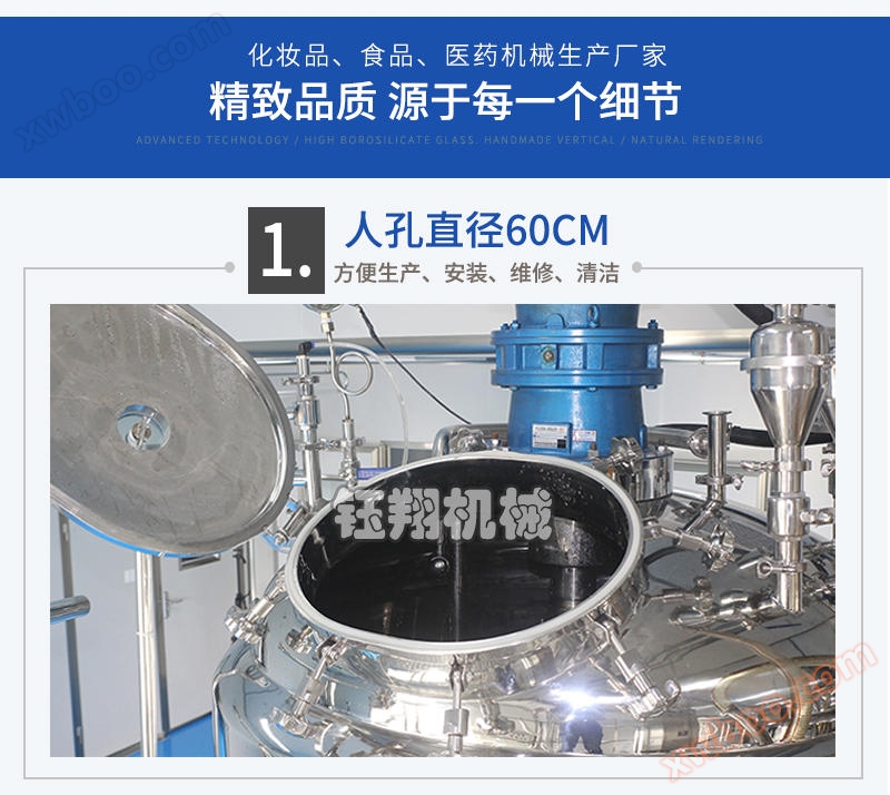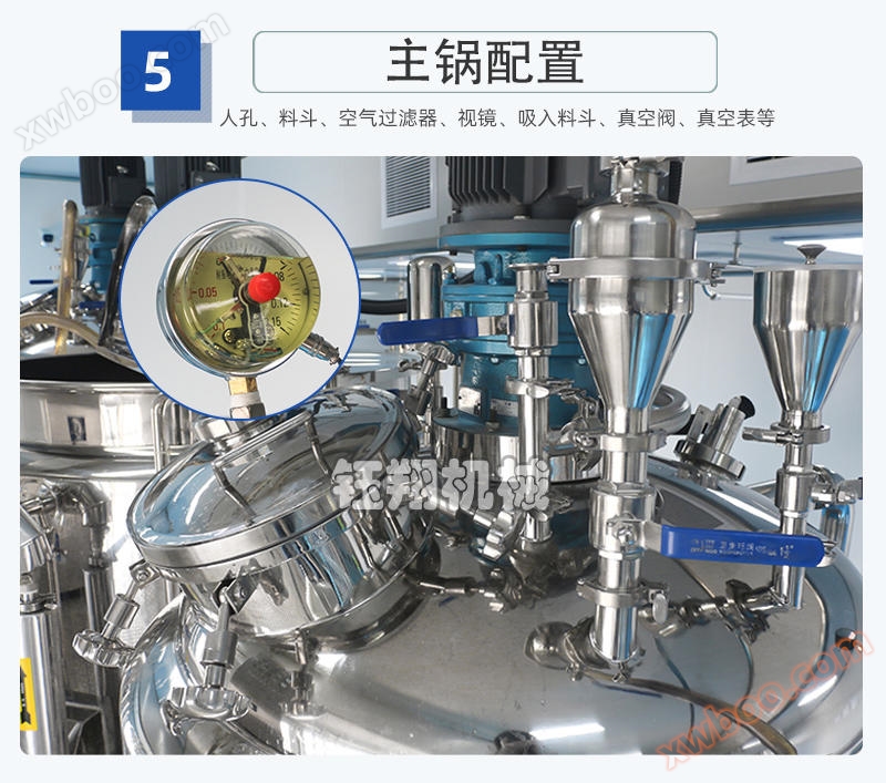 Vacuum defoaming is used to achieve aseptic requirements for materials, and vacuum suction is employed, especially for powder materials to avoid dust flying;